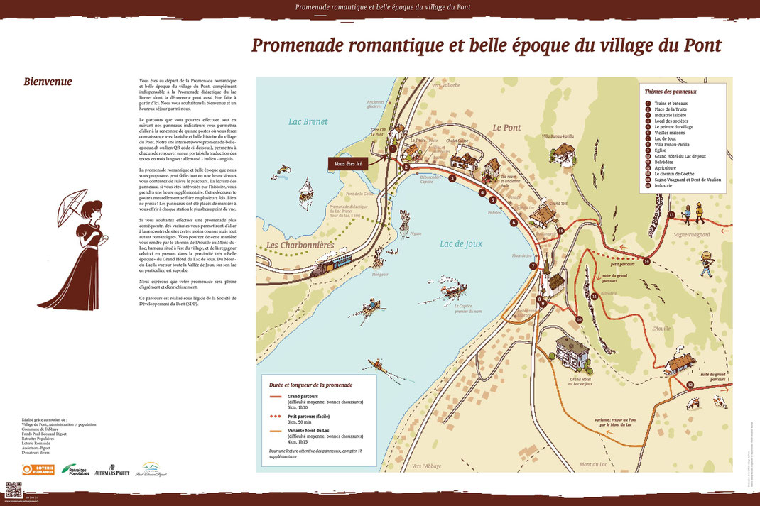 Il percorso, è stato realizzato a cura della Société de Développement du Pont (SDP) (la Società di Sviluppo di Le Pont), con il prezioso sostegno finanziario di numerosi sponsor.