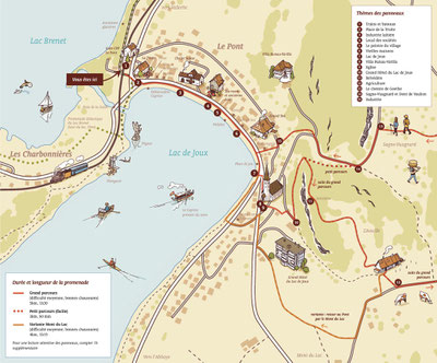 Se volete farne una più lunga, delle varianti vi permetteranno di andare alla scoperta di posti meno conosciuti ma altrettanto romantici. Potete seguire il sentiero de L'Aouille, che porta au Mont-du-Lac, frazione situata all'est del paese e poi riprenderlo, passando nelle vicinanze della "bella epoca" del Grande Hôtel del lago di Joux. Da Mont-du-Lac, la vista su tutta la vallata è semplicemente magnifica.