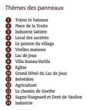 Ciò è più che sufficiente per soddisfare i diversi attori e partner dell'iniziativa. In primo luogo, Rémy Rochat, che ha svolto un importante lavoro di ricerca e ha redatto i testi. La grafica è stata affidata a Pierre-Abraham Rochat, mentre la realizzazione dei supporti, in metallo o in legno a seconda della posizione, è stata affidata ad artigiani della regione.